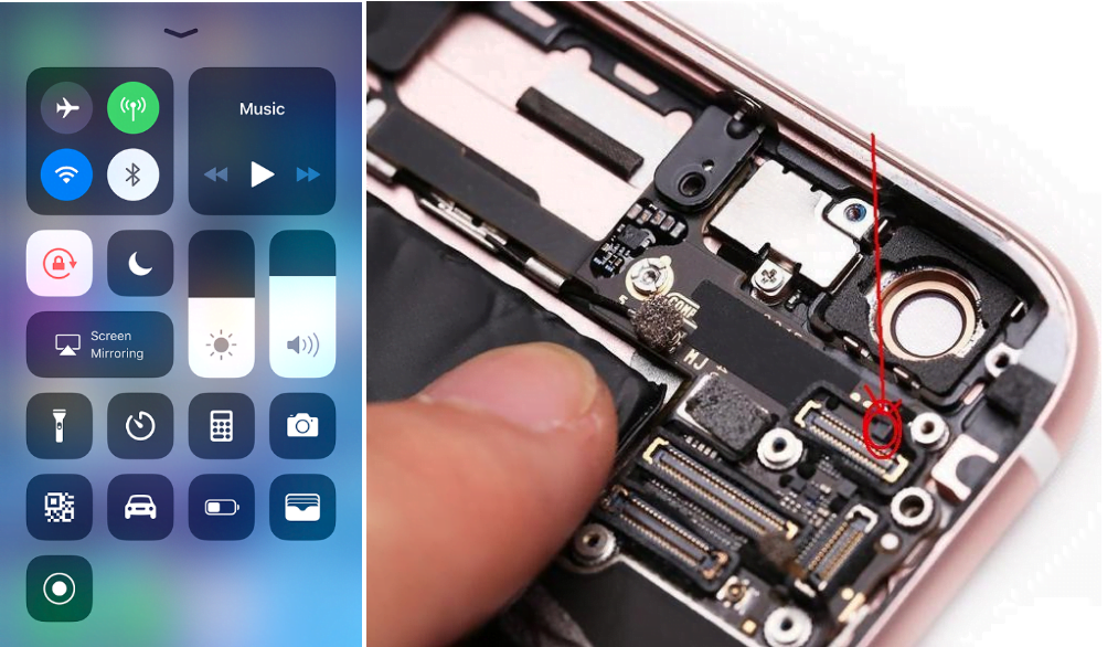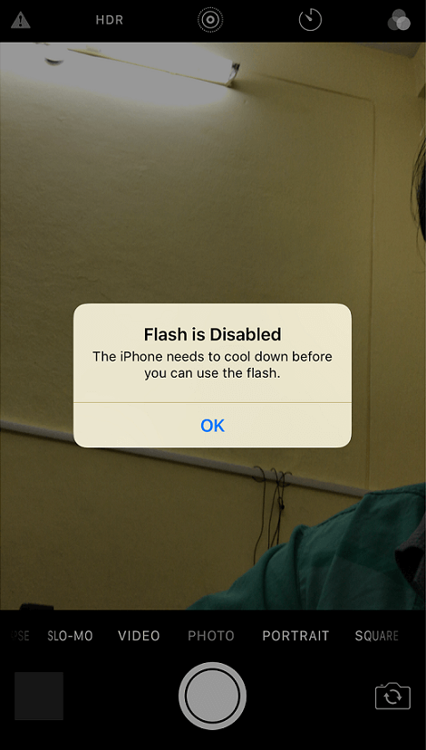Masalah kamera boleh juga disebabkan oleh salah satu cip “Camera IC” pada motherboard. Camera IC inilah yang mengawal fungsi kamera depan dan belakang. Untuk mengetahui kamera anda mempunyai masalah Camera IC adalah dengan membuka aplikasi kamera terlebih dahulu. Anda akan dapati pada bahagian “flash” mempunyai simbol yang bermaksud memerlukan perhatian. Anda boleh cuba untuk menekan simbol itu tetapi ianya akan mengeluarkan notis atau “pop up” seperti gambar dibawah. Manakala apabila anda membuka “control centre”, anda akan dapati bahawa simbol flash” itu malap dan tidak dapat untuk menggunakan ciri flash tersebut.
