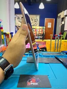 Mr. Jalil came to our shop with his iPad Air 2 that has a bloated battery. The battery has the possibility to damage the screen if it is bloated. Firstly, we applied heat on the edge of the screen to dilute the glue under the screen. Secondly, we pry off the screen carefully to make sure the screen is not cracked during the process. Next, we removed the battery and replaced with a new original battery. After that, we reassemble the device and left the device under UV ray to dry. Then, we tested the device and made sure all the components is working fine. Lastly, we returned the device back to him and he was happy to use his device again.